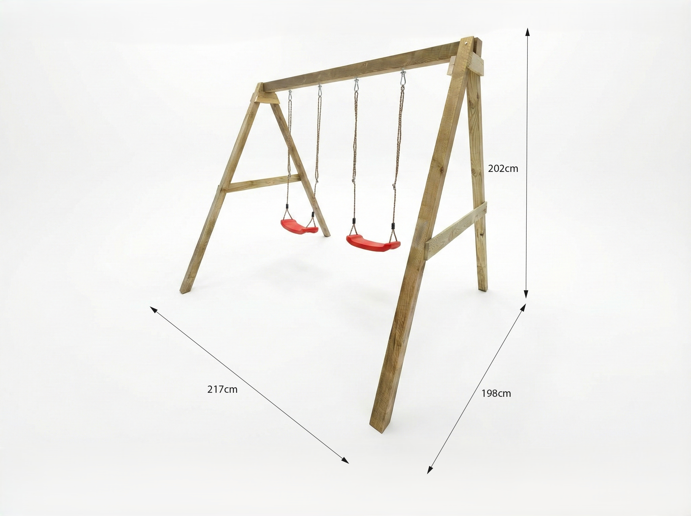 - 2 x siedziska huśtawki (czerwone) z regulowanymi linami nośnymi